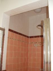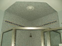 This 9' x 5' Master Bath in Clayton was remodeled from top to bottom. Mosaic ceramic tiles were used on the walls and shower surround, 12" x 12" field tile were used on the floor in a diagonal pattern. Notice the shape of the ceiling tile in the shower surround, I created the Neo-Angle design to flow with the shape of the shower pan and door. Lets create your new bathroom together! Request an appointment for an estimate today!