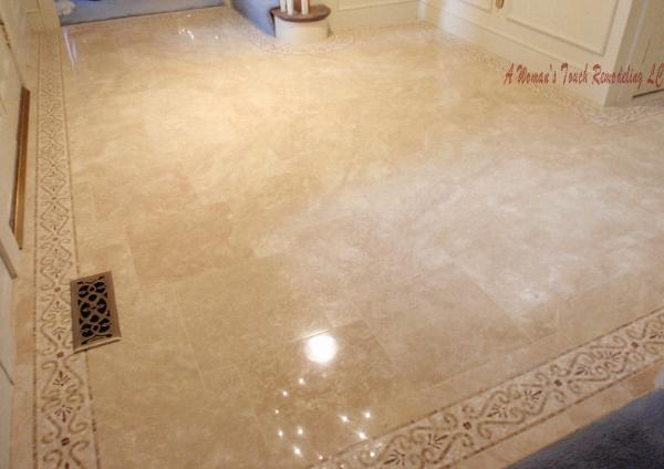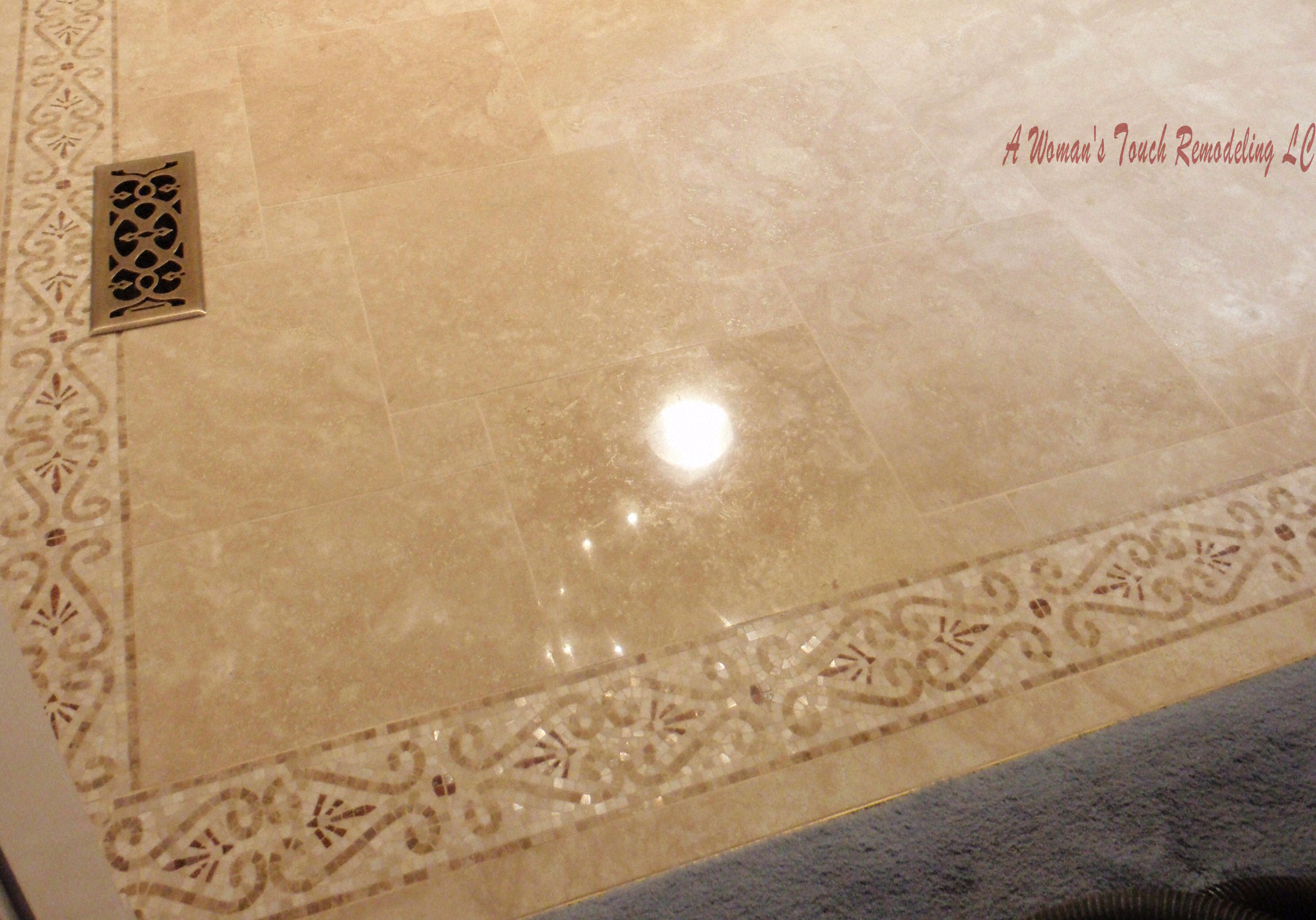 polished Travertine, outlined with a double border
