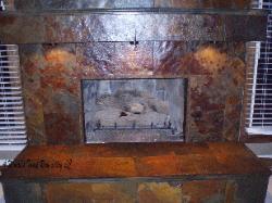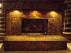 the custom built slate mantel and an outlet on the